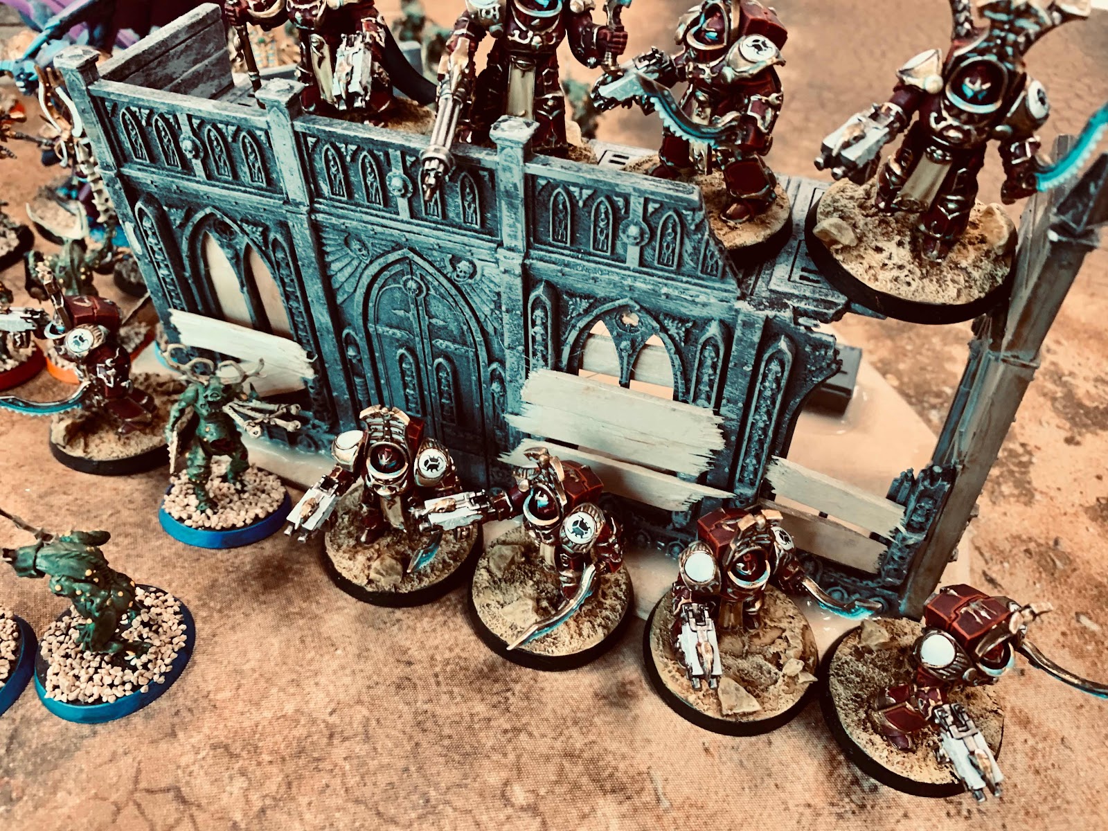 The battle between Cybixx’s mechanicum and Ahriman’s daemonic and traitor astartes force was a bitter slug fest. Cybixx was angry at Ahriman’s demands for a valuable xenos artefact, and the chaos sorcerer had no business interfering in his plans. Cybixx needed all the alien technology he could lay his hands on if his new project was to come to fruition, and he found it illogical that the Emerald Serpent would want to obstruct his endeavours.