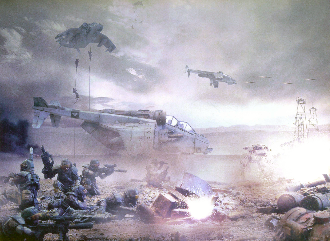The operation was divided into two parts. Operation Forum would be an airborne drop by the Gregorian 88th. Dropping at high speed from Valkyrie transports the mission was not without risk, but the highly trained scions, well equipped with plasma weaponry, were given objectives behind the main chaos defence lines, close to the Death Guard positions outside the city. The armoured units would then follow up as part of Operation Hortus, closing the gap to the paratroops as quickly as possible before they were surrounded and reduced by counter attacking chaos forces.